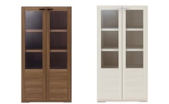 大切な本や収納物をほこりや汚れから守る扉付シェルフと飾って見せる |